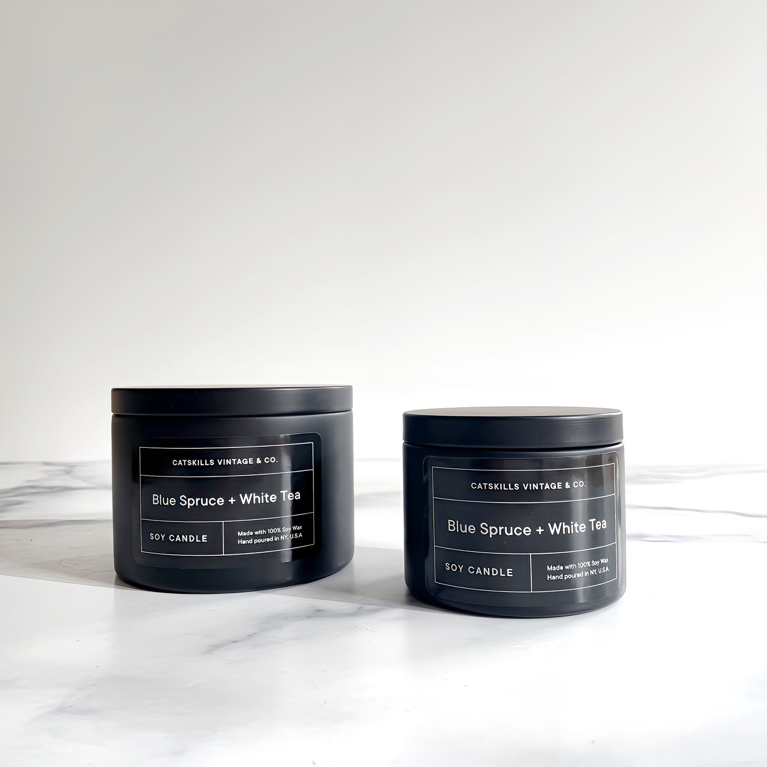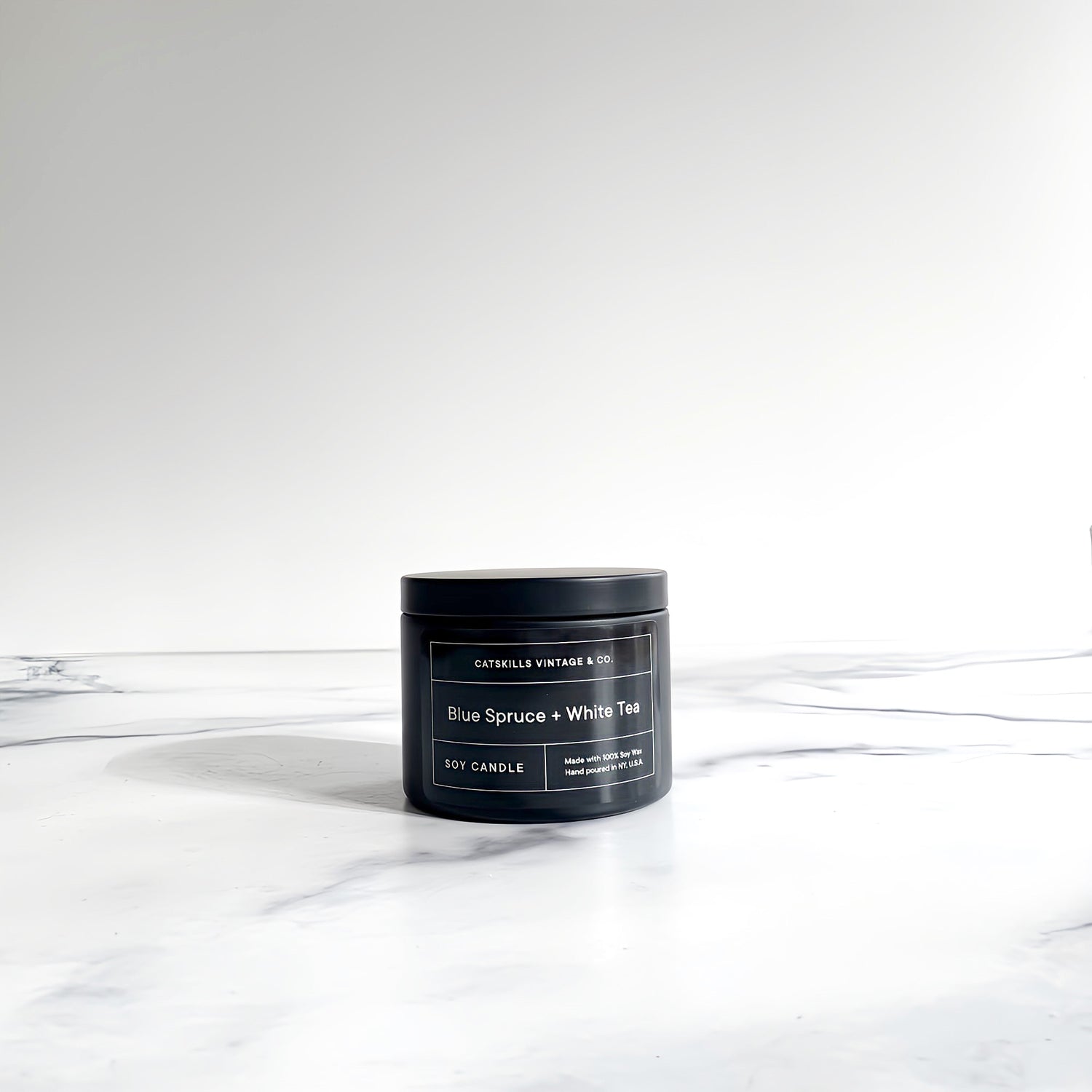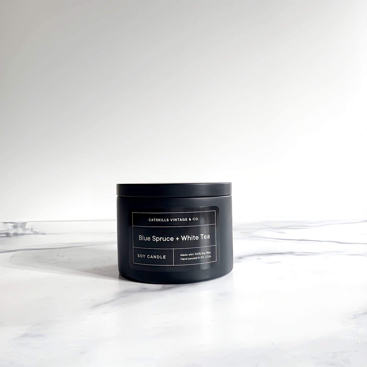 Blue Spruce + White Tea - Black Tin Candle