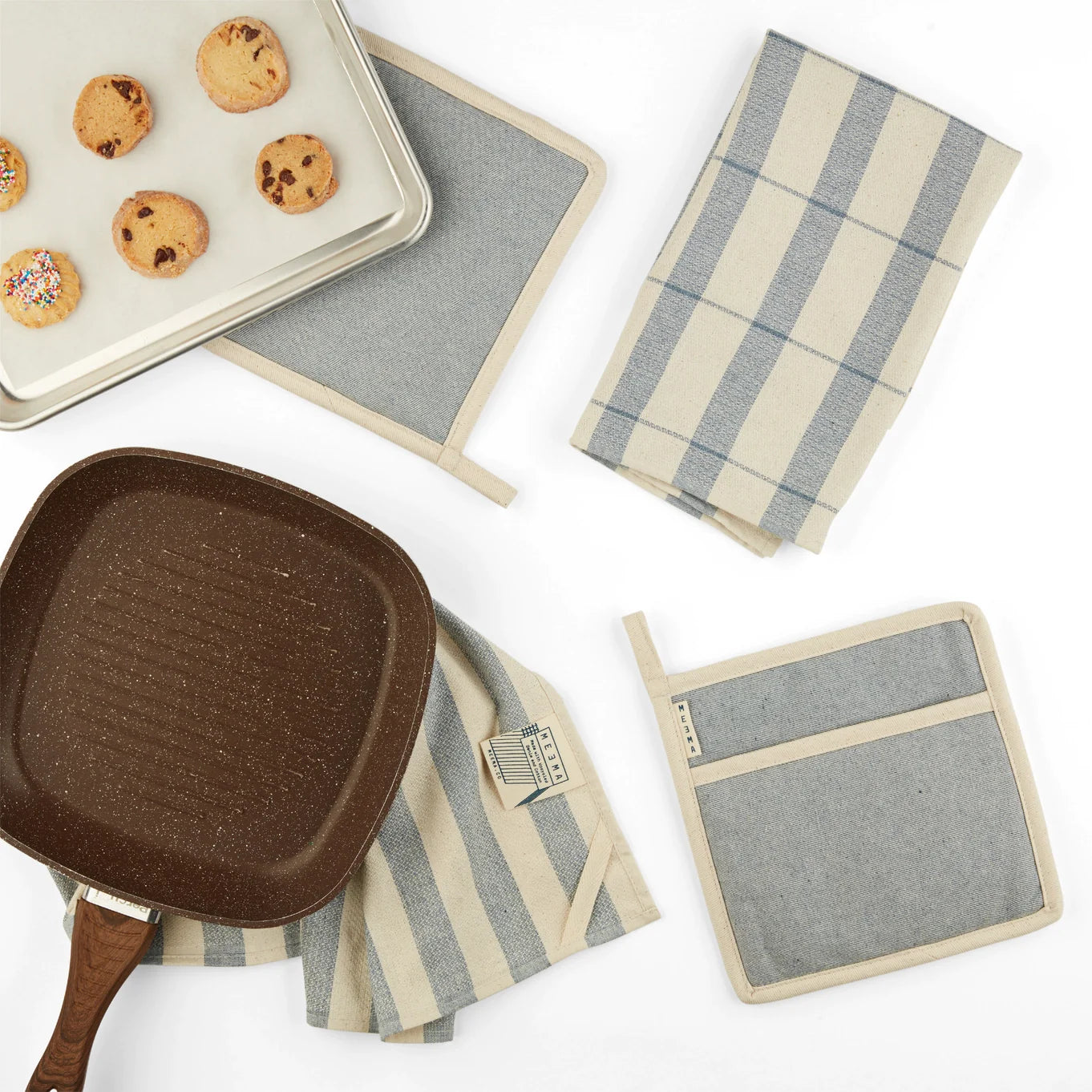 These upcycled Denim and cotton pot holders are made with a special weave for super absorbency and durability. Natural and blue denim color. 100% cotton (80% upcycled). Sold individually.