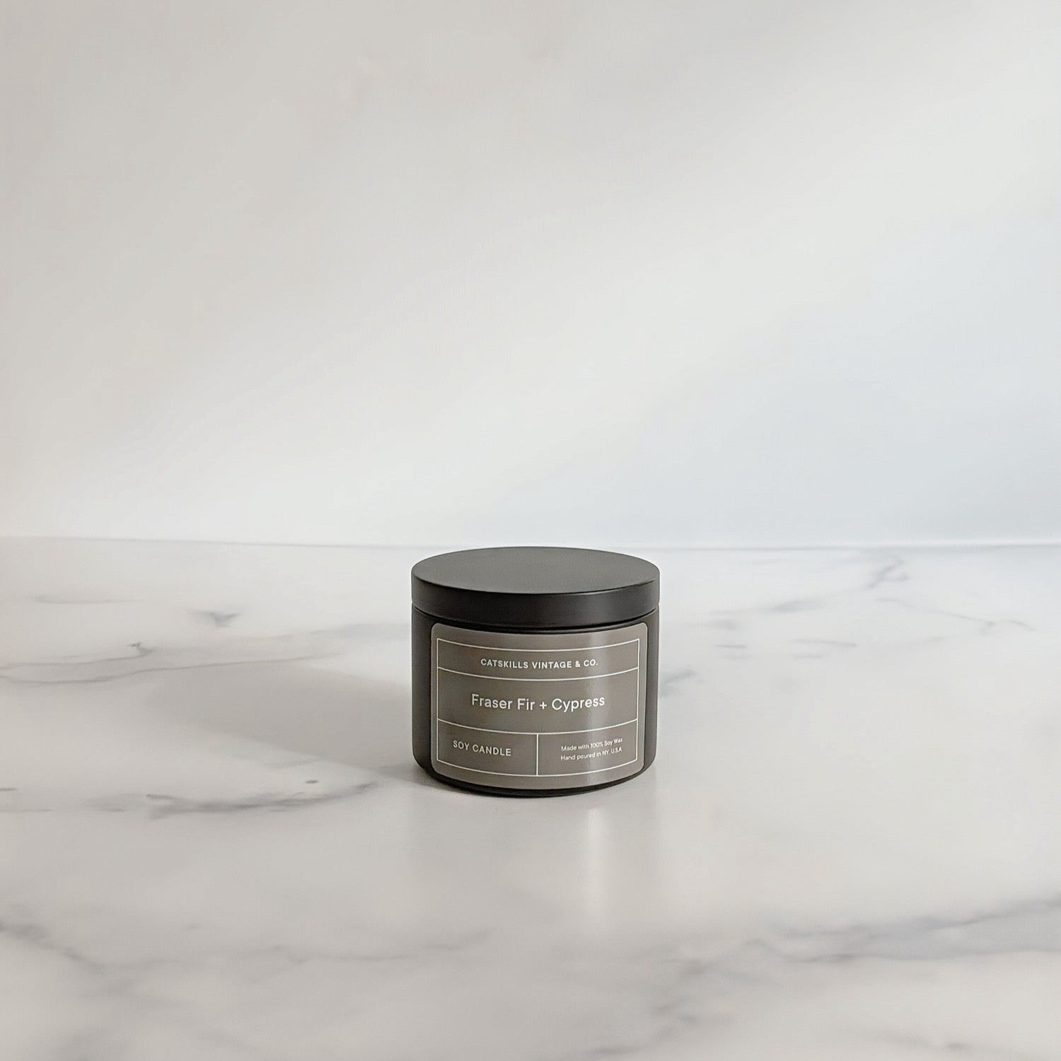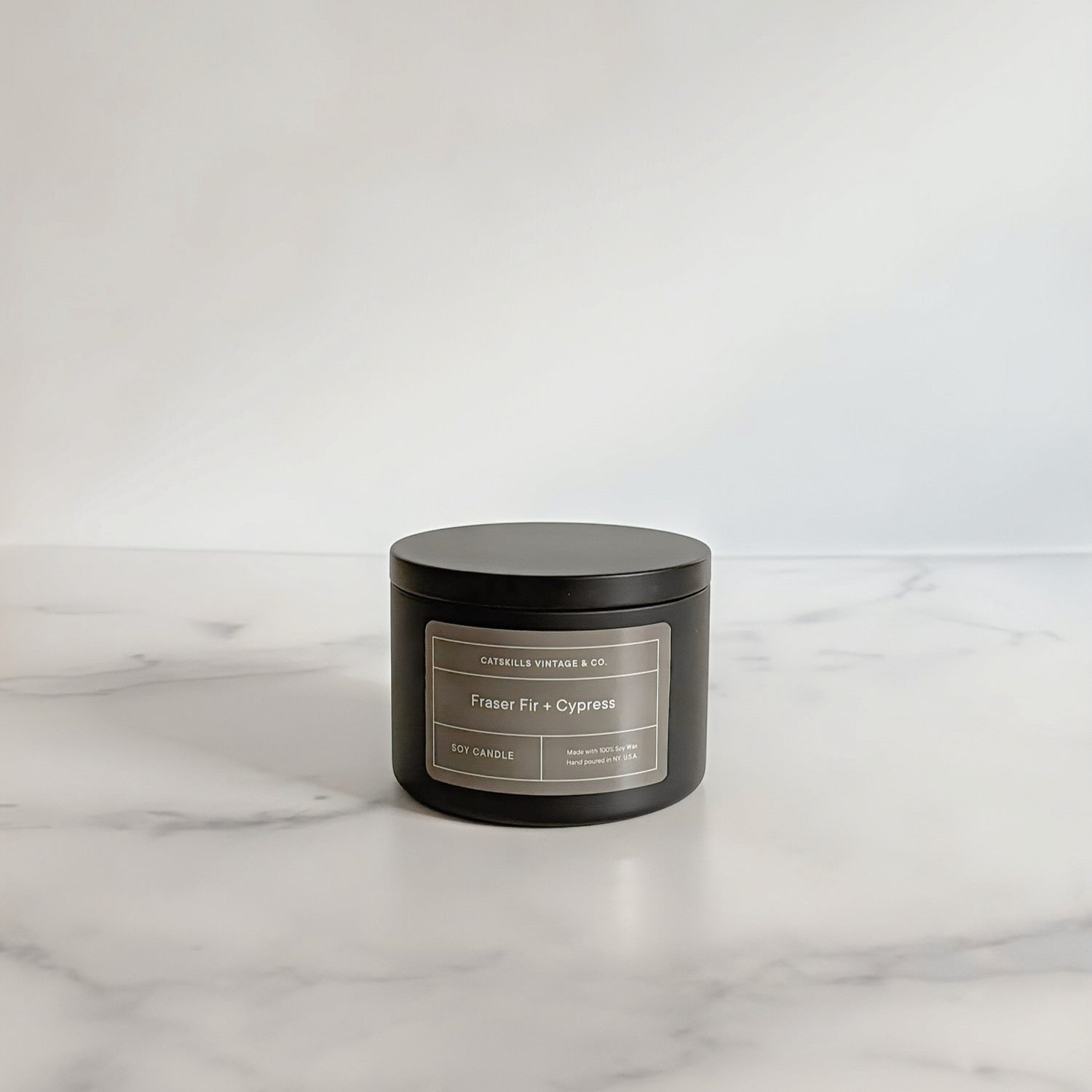 Holiday Black Tin Candle - Fraser Fir + Cypress