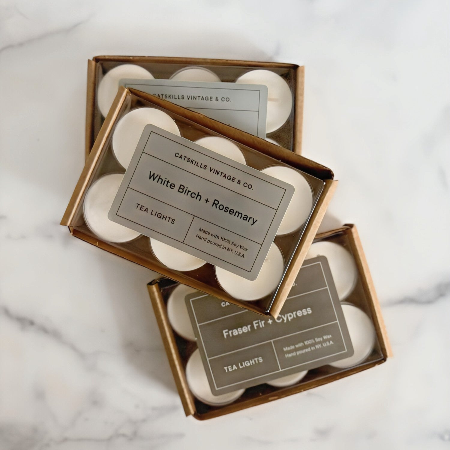 Small batch holiday scented tea light candles made with 100% soy wax, a natural fiber wick and infused with essential oils to ensure a clean, healthy burn. Hand poured in Kingston, NY.