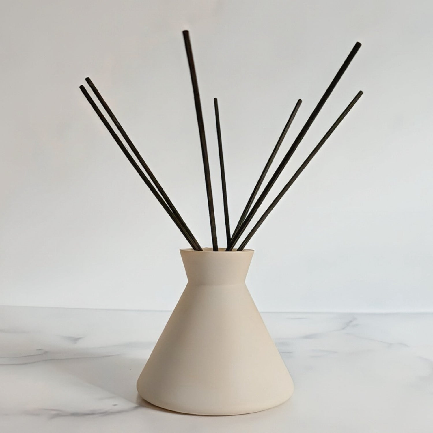 Elevate your Reed Diffuser game with this 7 oz. matte cream glass vase. Made for long-lasting aromas, they're low-maintenance and versatile, offering natural fragrance dispersion that can be customized with any scent. Add this to your Reed Diffuser purchase.