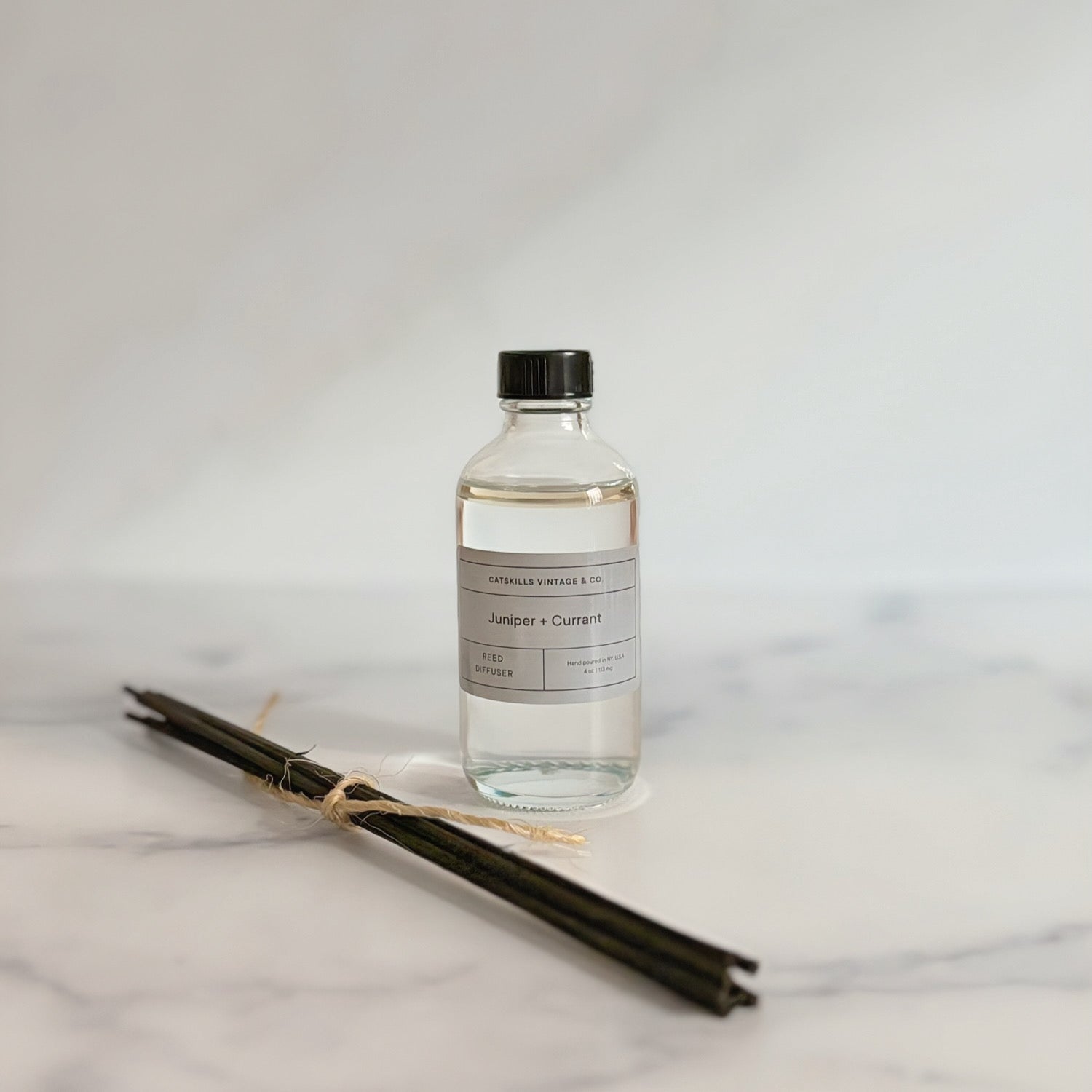 Frosted Juniper + Currant is an enchanting blend of fresh evergreens and fruits. Cooling camphor, airy ozone, and a hint of citrus start off this complex winter scent. Middle notes of deep red berry balance the woody pine and juniper notes. The fresh evergreen notes are reinforced by eucalyptus, fir needle, and cedar leaf essential oils. This is the perfect holiday scent to have in your home.