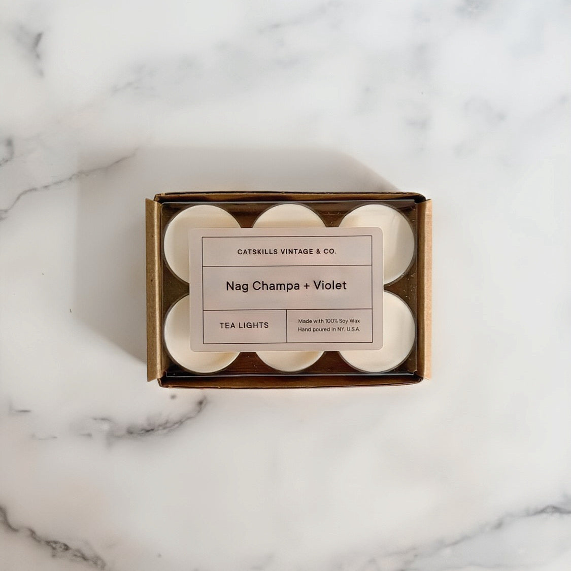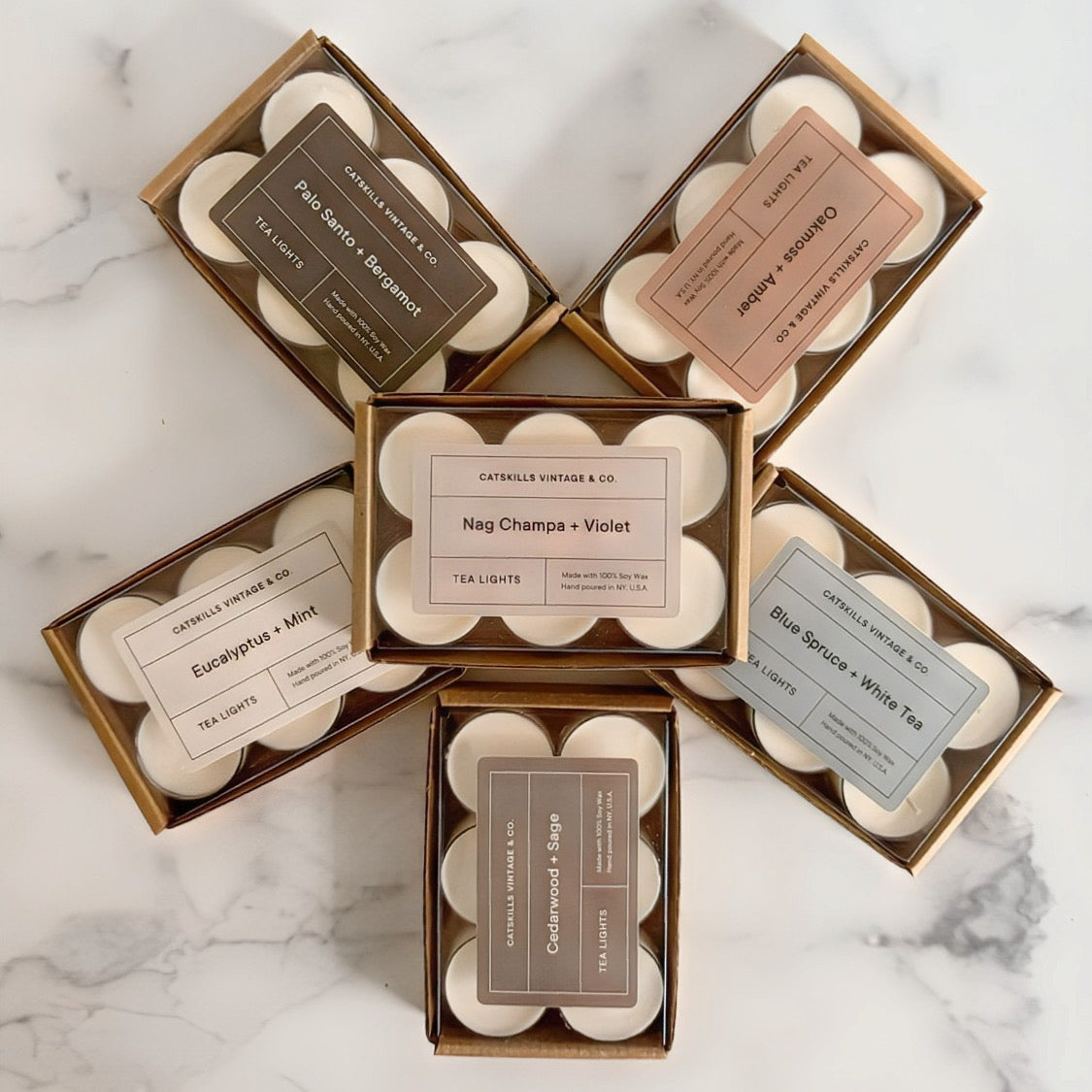 Small batch scented tea light candles made with 100% soy wax, a natural fiber wick and infused with essential oils to ensure a clean, healthy burn. Hand poured in Kingston, NY.
