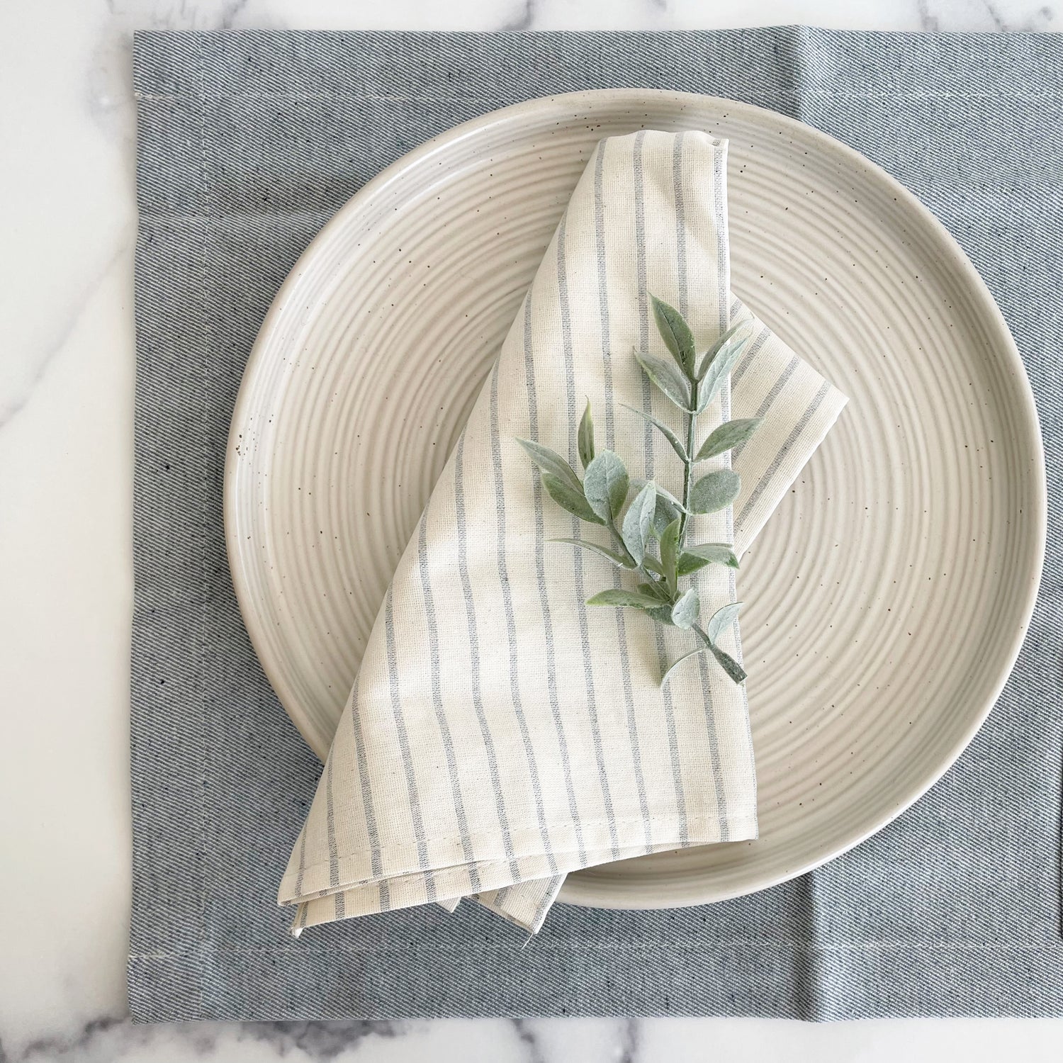 MEEMA Cloth napkins are made with soft and light cotton fabric. Designed for daily use at home, special occasions, or as a perfect gift. This cloth napkin set of 4 is an ideal substitute for single-use paper napkins. 100% cotton (62% upcycled). Dimensions: 19.5” x 18.5”.